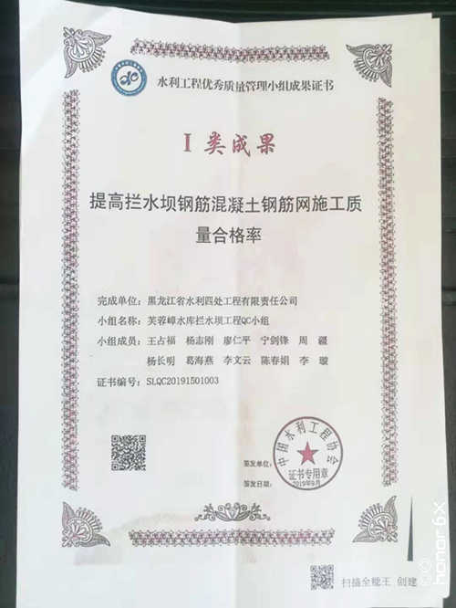 我公司芙蓉嶂水庫攔水壩工程QC小組以《提高攔水壩鋼筋混凝土鋼筋網(wǎng)施工質(zhì)量合格率》成果參評(píng),一舉在全國同行業(yè)690項(xiàng)成果競評(píng)中脫穎而出,被評(píng)為2019年度全國水利工程優(yōu)秀質(zhì)量管理小組1類成果,喜登金鼎,實(shí)屬不易。